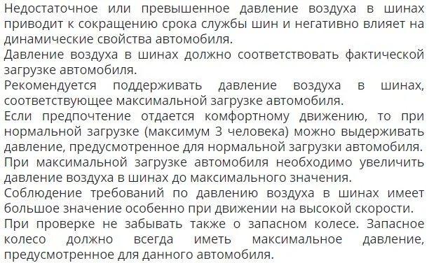 Нормативное давление воздуха в шинах и умеренная манера вождения продлевают срок службы шин.