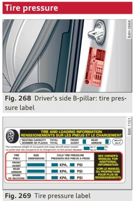 На автомобиле второго поколения наклейка по давлению шин находится на средней стойке. Кстати, датчиков давления шин может не быть в колесах, система может работать по датчикам абс.
