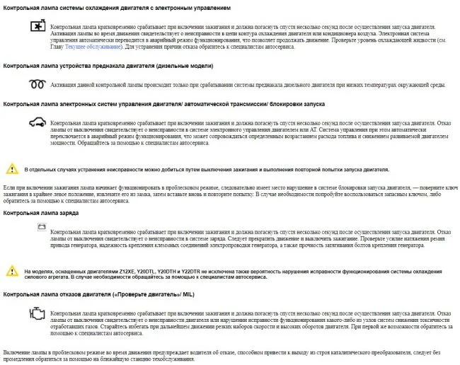 Описание значков указано ниже (крупно по ссылке). Одна из проблем это с иммобилайзером, попробуйте запустить двигатель вторым ключом. Проведите диагностику сканером, считайте ошибки и проведите по ним проверки. Так же проверьте предохранители.