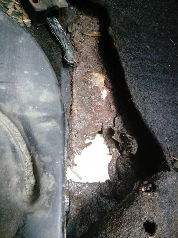 Проблем порядком. Надо будет снимать оба передних сиденья, пластик тоннеля, коврик, шумку. Ну а там уже по результату разборки, весь пол менять или только латку вставить.
