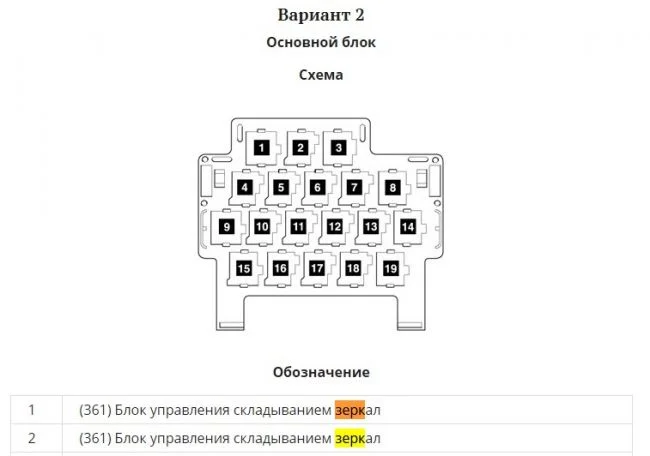 Какой предохранитель на регулировку зеркал в Фольксваген Шаран?