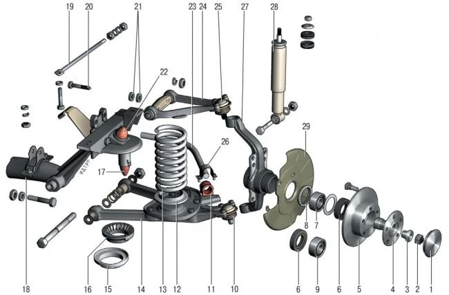 Вот подвеска «Нивы». Смотри сколько соединений.