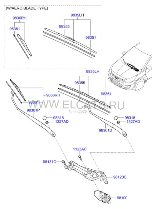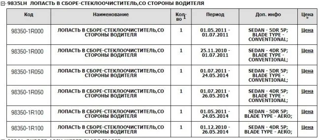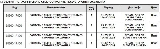 Согласно вин номера - Hyundai/Kia 98350-1R100 Щётка стеклоочистителя передняя левая, Hyundai/Kia 98360-1R100 Щётка стеклоочистителя передняя правая.