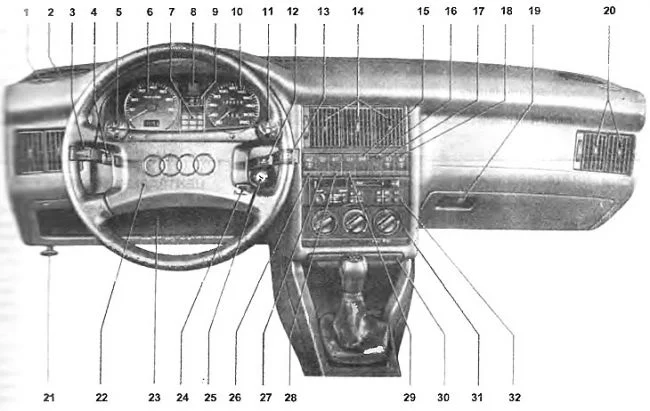 Що означають високі кнопки на табло Ауді 80 Б3?