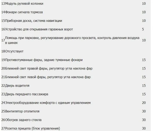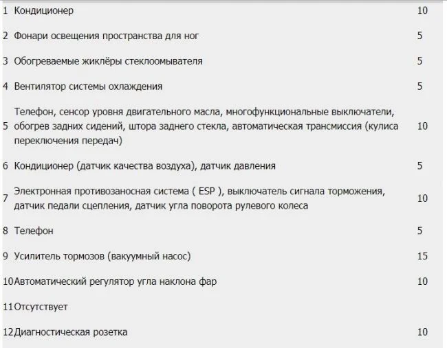 Вот схема предохранителей панели приборов