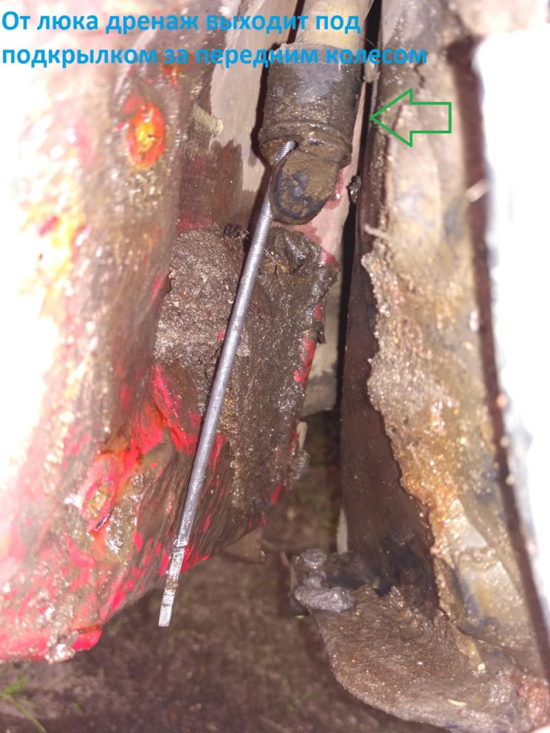 Дренаж есть, на фото увидите куда протягивать трос. Дренаж от люка выходит под переднее крыло, нужно будет отодвинуть подкрылок в задней части со стороны водителя.