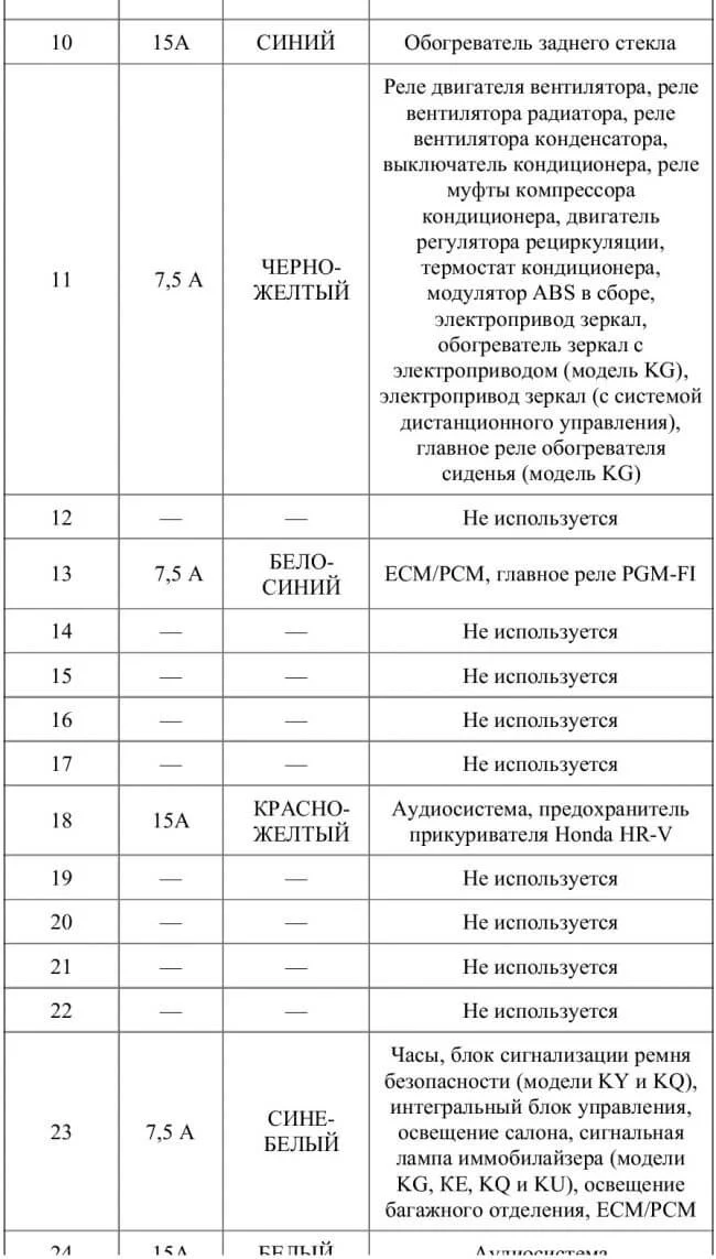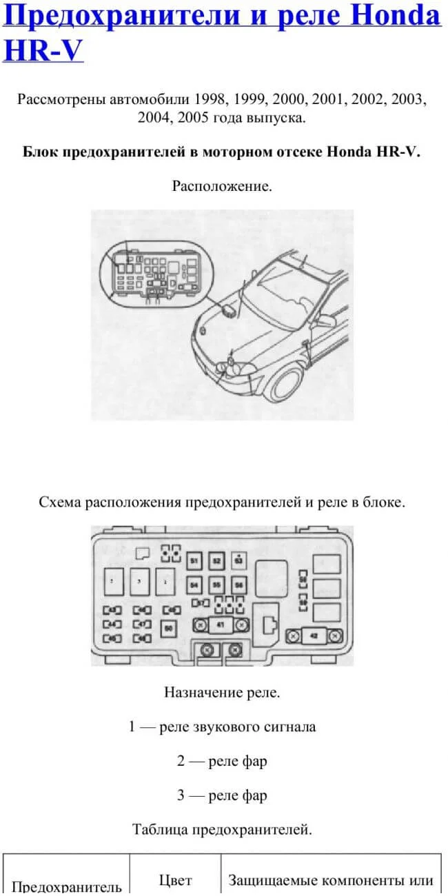 Пропал звуковой сигнал. В пакете предохранителей отсутствует схема где какой предохранитель находится. И по какой еще причине может пропасть звуковой сигнал? Honda HR-V, 2005г