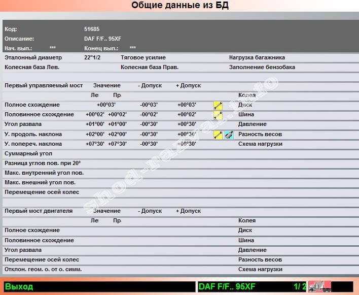Сколько схождение передних колес в мм в ДАФ 95ХФ?