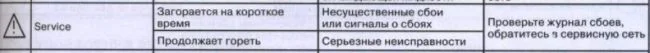 После запуска двигателя загорается жёлтый треугольный значок предупреждения. При включении поворота налево сигнал мигает очень часто.