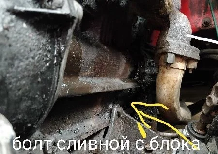 Ниже на фото указана сливная пробка, если ее все же нет, то снять самый нижний патрубок и подать воздух (дунуть) в систему охлаждения, что бы остальное вышло.