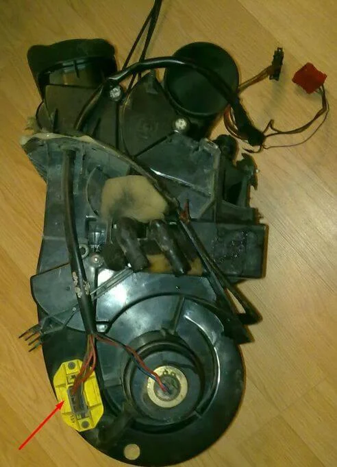 Где находится блок резисторов вентилятора охлаждения на Ауди 100?