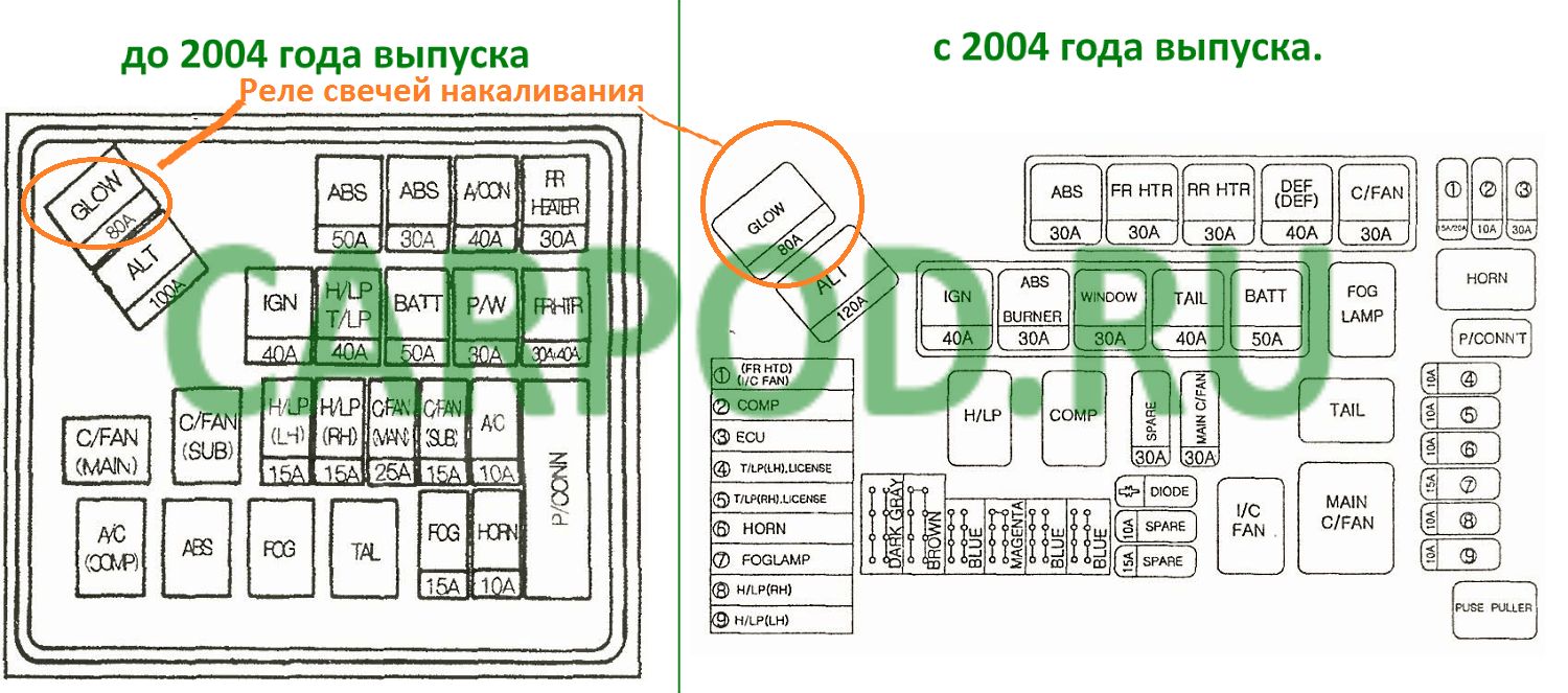 Где предохранитель на свечи накаливания в Хендай Старекс?