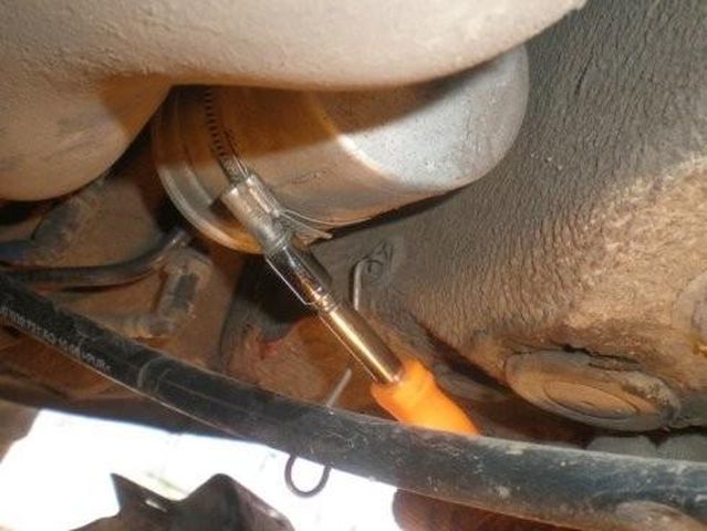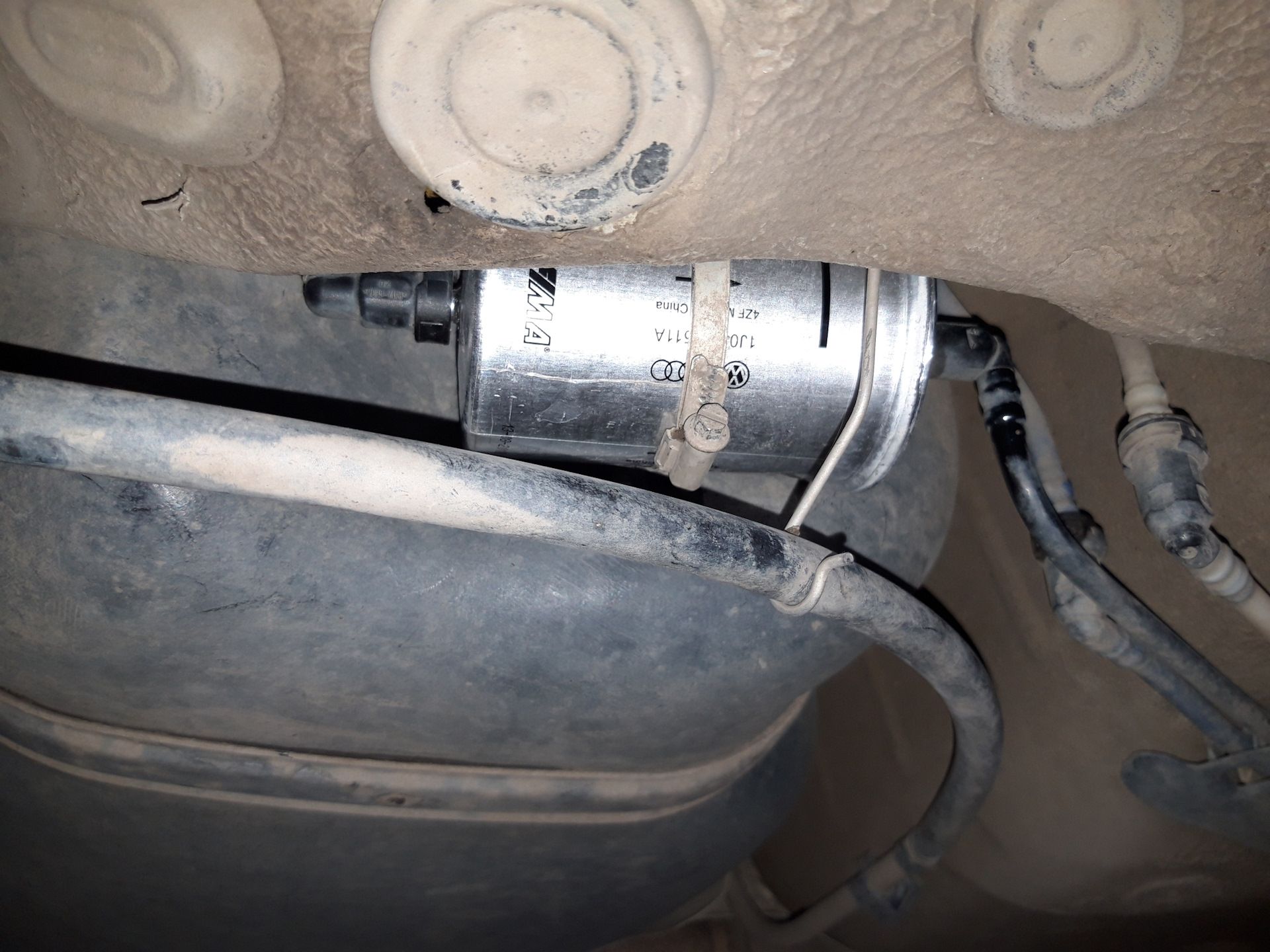 Вроде как на всех бензиновых фабиях, топливный фильтр находится под днищем.
