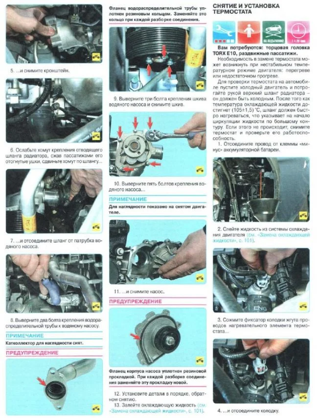 Течь антифриза в местах крепления термостата и помпы Шевроле Авео 2