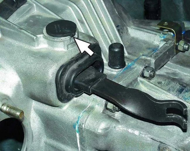 Смотрел в ютубе видео про то как смазать вилку сцепления. Значит нашел два видоса где в круглой заглушке(стрелкой показано) сверлом небольшим просверливают отверстие. После чего заливают туда чуть трансмиссионного масла. Тем самым смазывается сама ось вилки сцепления и нижняя втулка вилки. Только для чего эту заглушку черную нужно сверлить, если она снимается в лет?