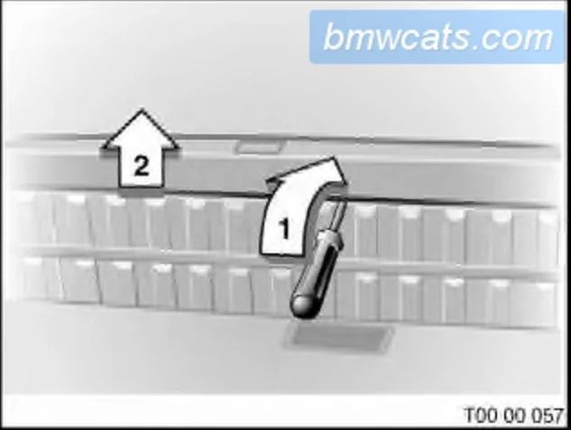 Здравствуйте. Есть вот такая информация по обшивке откидной части двери багажника. Освободить обшивку с помощью автомобильного ключа или отвертки из зажимов (стрелка 1) и снять движением вверх (стрелка 2), это снимется часть обшивки.