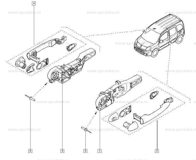 Вот Renault Kangoo. Надо полагать и ручки такого образца.