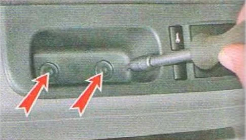 - Выкрутите винты крепления внутренней дверной ручки с модулем управления стеклоподъемниками.