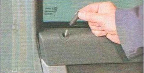 - Отверткой отожмите обивку двери так, чтобы пластмассовые держатели вышли из отверстий в двери, а затем снимите обшивку.