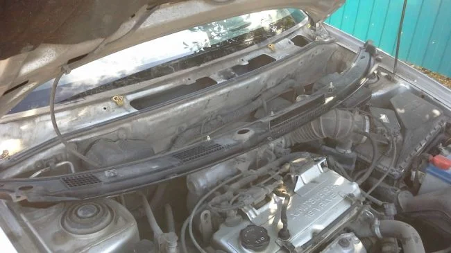 Как снять пластиковую защиту под стеклоочистителями Митсубиси Каризма?