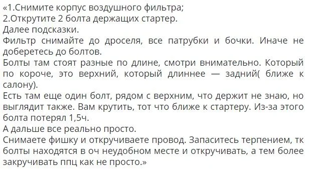 И ещё один рассказ про снятие стартера.