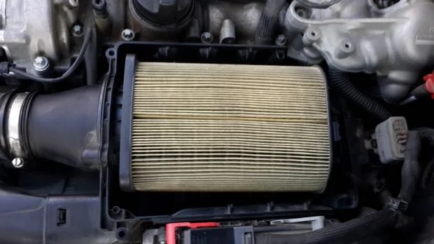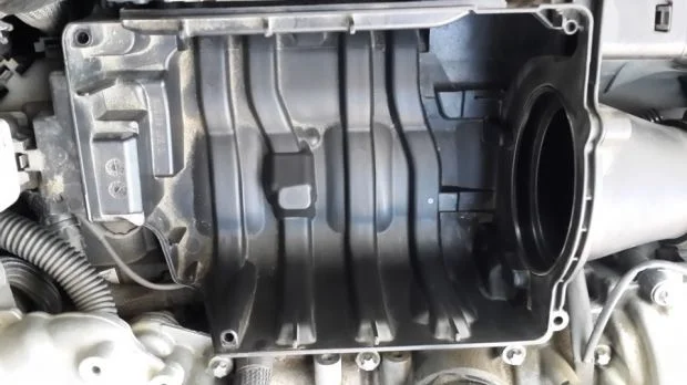 Открой капот. Карбоновая, верхняя часть мотора — корпус воздухана. Справа с торца крышка-открой и не упади. Там много чего будет.