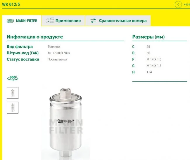 Подойдёт ли топливный фильтр Mann-Filter WK612/5 на ВАЗ 21074 инжектор?