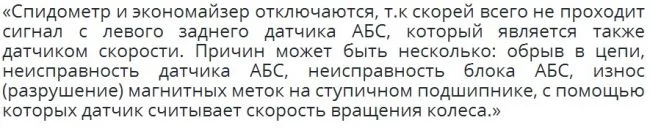 Недавно перестал работать спидометр. Тахометр работает, а спидометр и экономайзер не работают. Подскажите, в чём причина может быть? Предохранители все целы