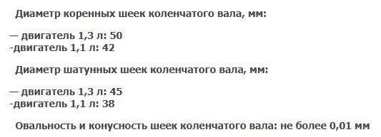 Какие стандартные размеры коленчатого вала на Hyundai Getz 1.3?