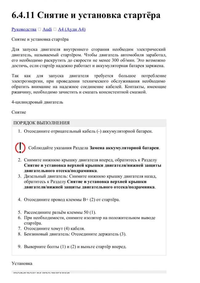 Как снять стартер Ауди А4 Б6