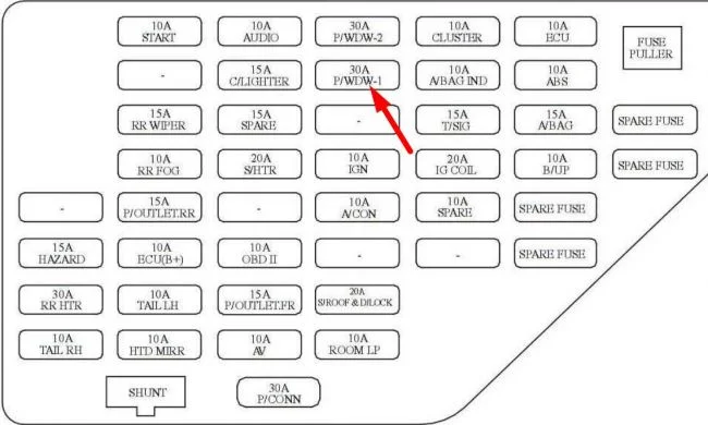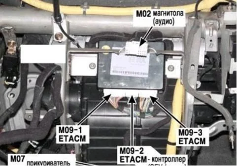 ETACM находится за магнитолой, на фото. P/WDW-1 да, это предохранитель стеклоподъемников левой стороны (с цифрой 2 — правой стороны). Проверьте еще блок стеклоподъемников (кнопок водительской двери), подробнее описано тут и эл. схема есть. ETACM в последнюю очередь проверяйте.