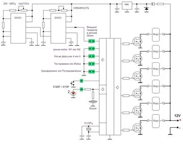 Нужна схема управления инжекторами, имитирующая работу двс. Описание есть, а дальше стопор. Генератор пр-имульсов с регул. частотой lm358. 10-тичный счётчик на cd4017. n-канальные mosfetы irf520. Стабилизатор напряжения 7508. Мягкая чистка форсунок. Видео на ютюбе, там он самое.