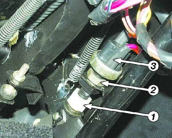 Рядом с тормозной педалью ничего нету кроме вертикально закреплённого с левой стороны датчика с тремя проводами если это лягушка, то какой принцип её действия?