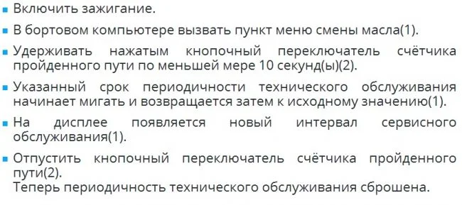 Если загорелся значок сервиса на приборной панели, главное — это значит, пора обслужить автомобиль — замена масла в двигателе, фильтров и т.п. А потом можно и сбросить (в смысле потушить этот значок, указанным выше способом).
