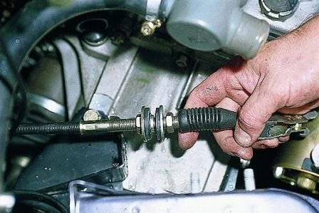 Нажал педаль сцепления, произошёл щелчок, как при обрыве тросика, и педаль провалилась. При этом передача не выключилась и движение продолжалось. Трос сцепления оказался целым. Снял КПП, разобрал полностью корзину — всё в рабочем состоянии. Выжимной и вилка тоже нормальные. В чем причина? Мог трос сцепления резко вытянуться?