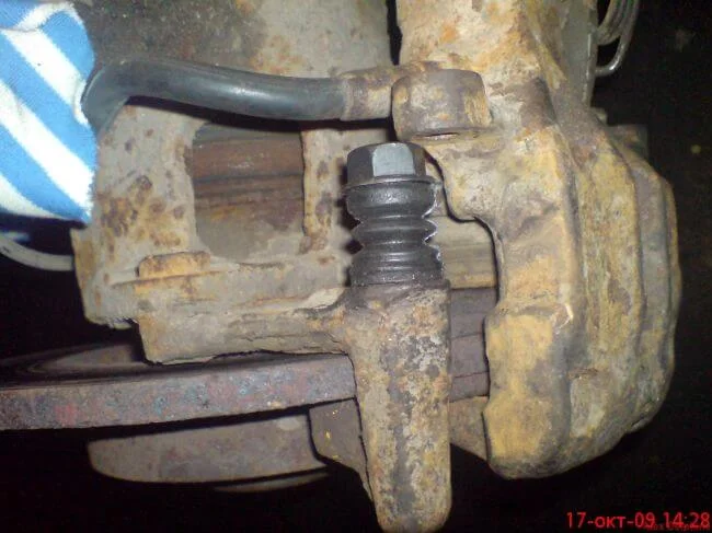 Как открутить скобу тормоза на задних дисковых тормозах Фольксваген Пассат Б3?