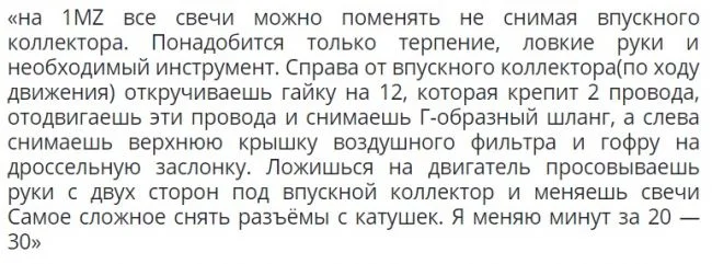 Про замену 3-х задних свечей на двигателе 1MZ-FЕ, некоторые вот так пишут: