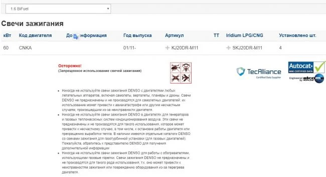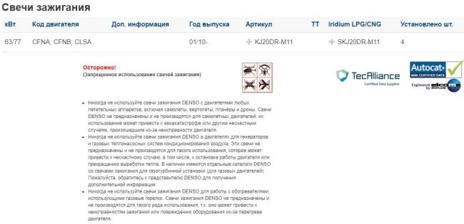 На официальном сайте Denso есть возможность подбора свечей, на данный двигатель рекомендованы свечи KJ20DR-M11 и SKJ20DR-M11.