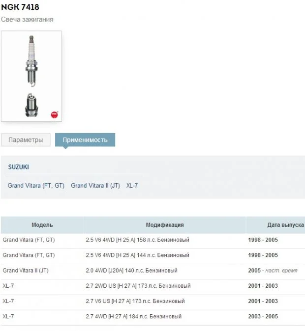 Какие свечи зажигания подходят на Сузуки Гранд Витара?