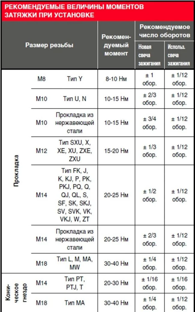 Ниже например рекомендации по Денсо и NGK.