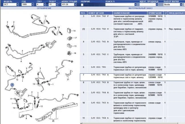 Какая длина тормозной трубки до заднего правого колеса в Шкода Октавия?