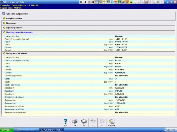 Здравствуйте, нужны данные о развал/схождении Chevrolet Tacuma.