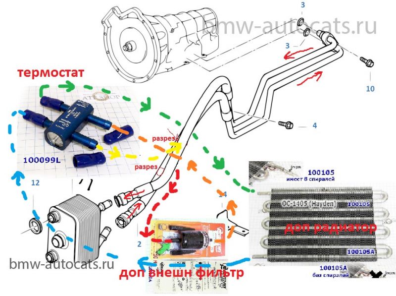 Если температурный режим выше среднего, то можно прибегнуть к установке дополнительного радиатора охлаждения на 8 секций, к нему приобрести термостат и дополнительный фильтр.