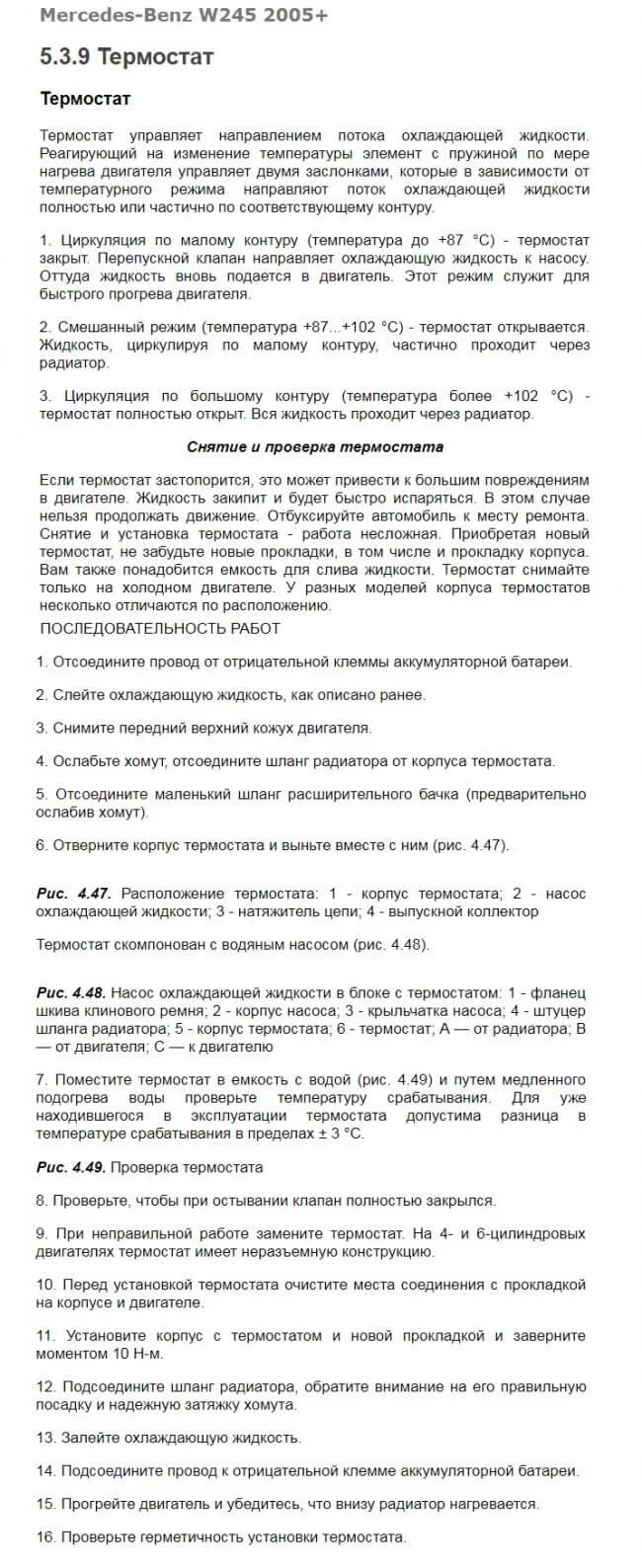 Где находится термостат и как его заменить в Мерседес W245?
