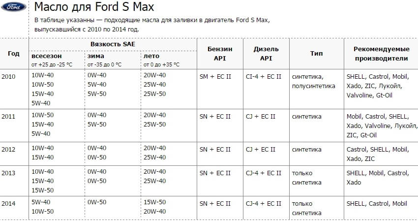 Какое масло заливать для Форд С-Макс?