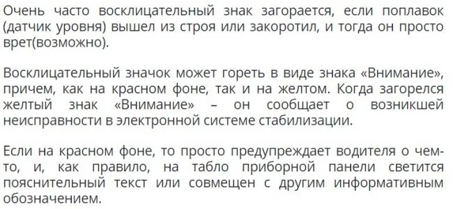Горит восклицательный знак на панели приборов Тойота Виста 4