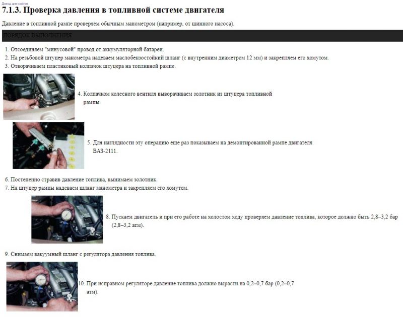 Ну а в ВАЗовских инструкциях, конечно в бумажках везде почти пишут, что давление топлива должно быть до 4-х атмосфер. Вот кто-то решил что именно такие должны быть цифры, ну и все подряд переписывают их. Где-то пишут 2,8 — 3,2 атм. А где-то пишут, для двигателя ВАЗ 1,6 литра надо давление 3,6 — 4,0 атм. И всё это в теории.