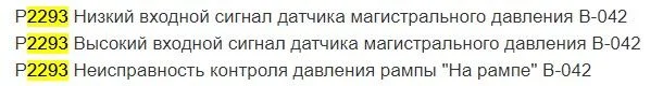 P2293 — Регулятор давления топлива 2, производительность. Проверьте не льют ли форсунки, далее нужно проверить работу регулятора давления (его разъем и провода), проблема может быть в нем.