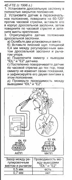Регулировка Датчика Положения Дроссельной Заслонки «Toyota Starlet»