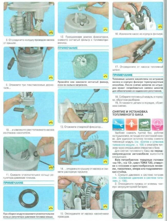 Топливный фильтр стоит в топливном модуле в топливном баке (сеточка и нижний бочонок это фильтр тонкой очистки). Вам пригодится выдержка из руководства и видео